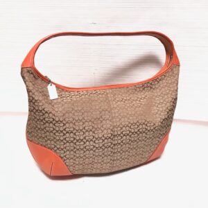 COACH コーチ ワンショルダーバッグ ナイロン×レザー ミニシグネチャー柄 オレンジカラー 三日月型バッグ |
