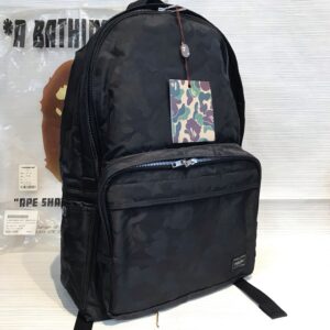 未使用 A BATHING APE×PORTER アベイシングエイプ×ポーター コラボバックパック PORTER Backpack Black Camo カモフラージュ柄 黒